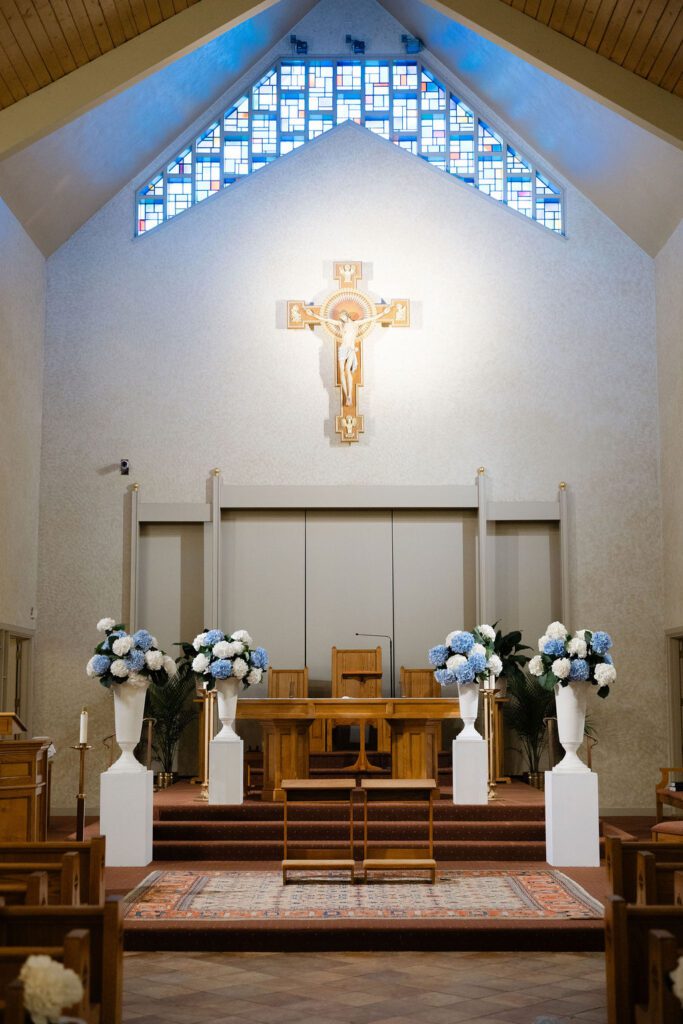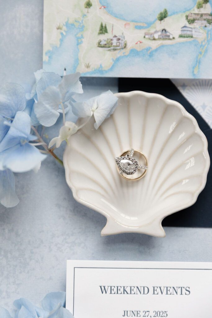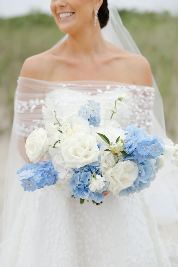 Susan’s design inspiration stemmed from Cape Cod’s most beloved bloom, the blue hydrangea. We set out to create a setting that felt immersive yet refined, surrounding guests in soft periwinkle tones, airy whites, and lush floral textures that embodied seaside romance.